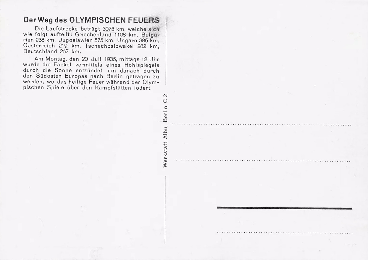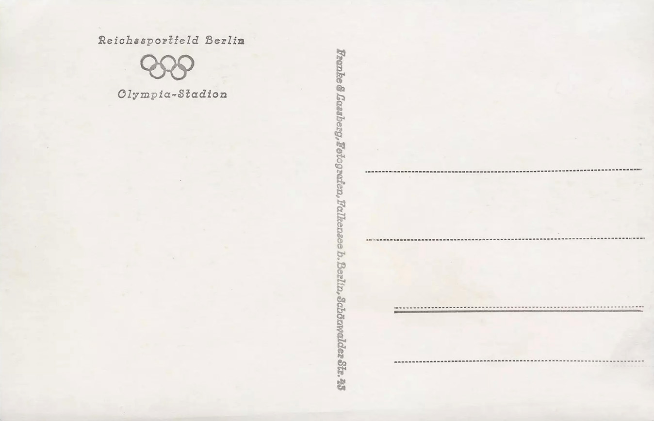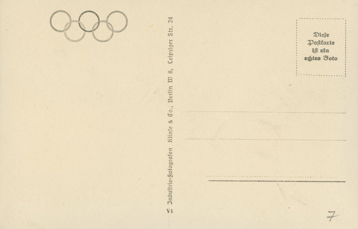 [Above: Postcard showing Berlin decorated for the Olympics. Reverse.]