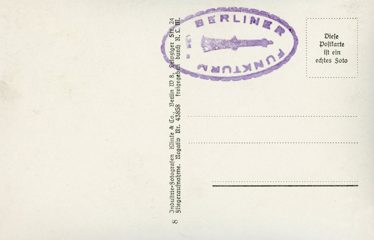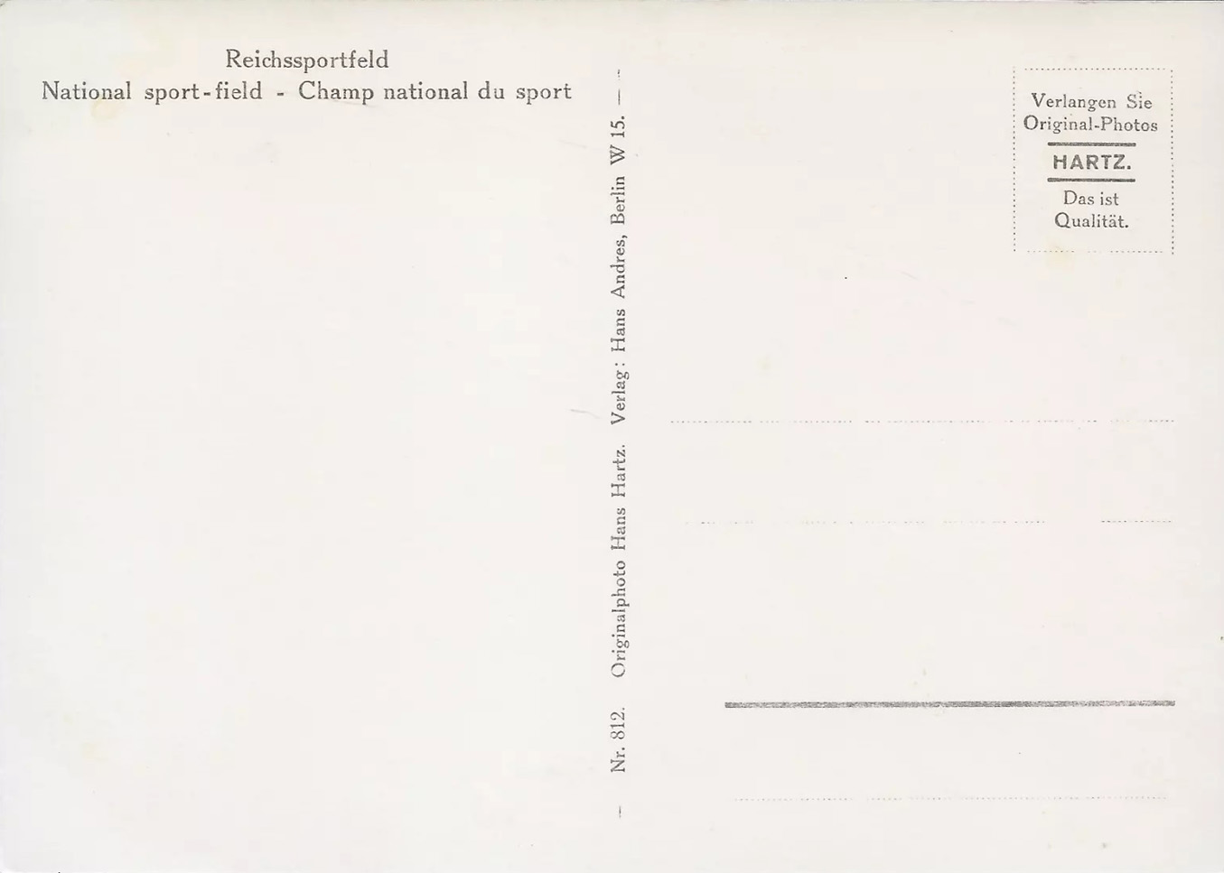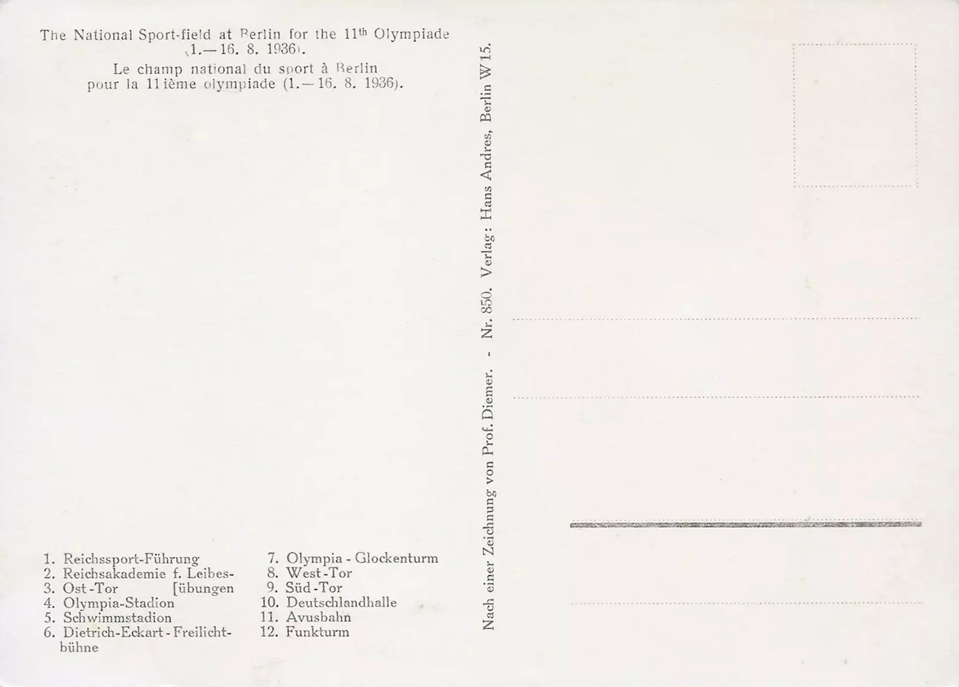 [Above: Postcard showing Berlin decorated for the Olympics. Reverse.]