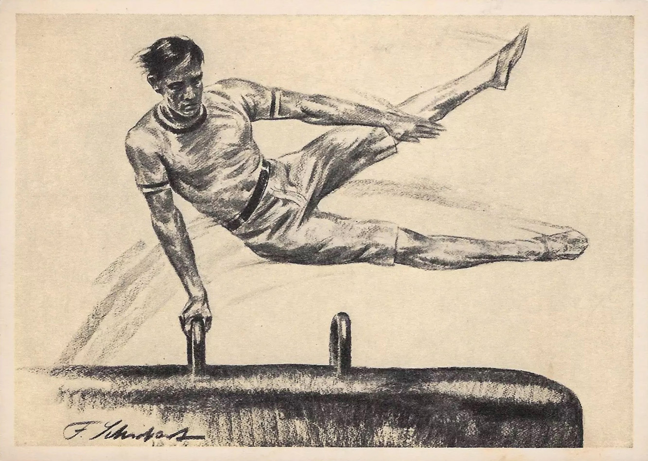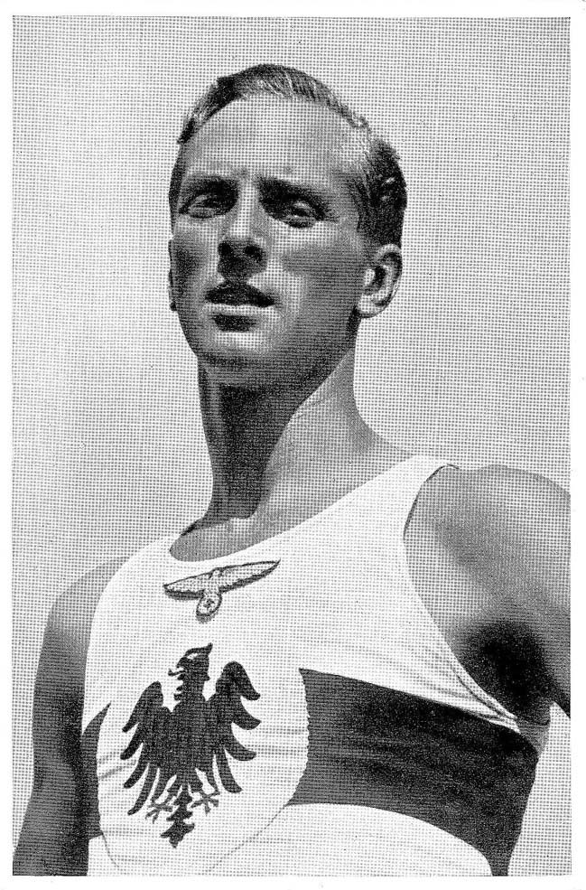 [Above: German athlete Erwin Wegner... check out that cool shirt!]