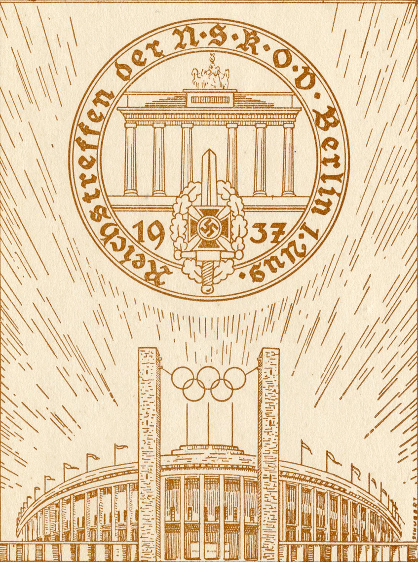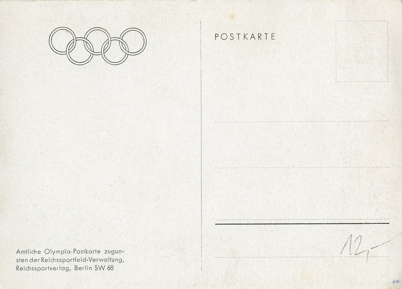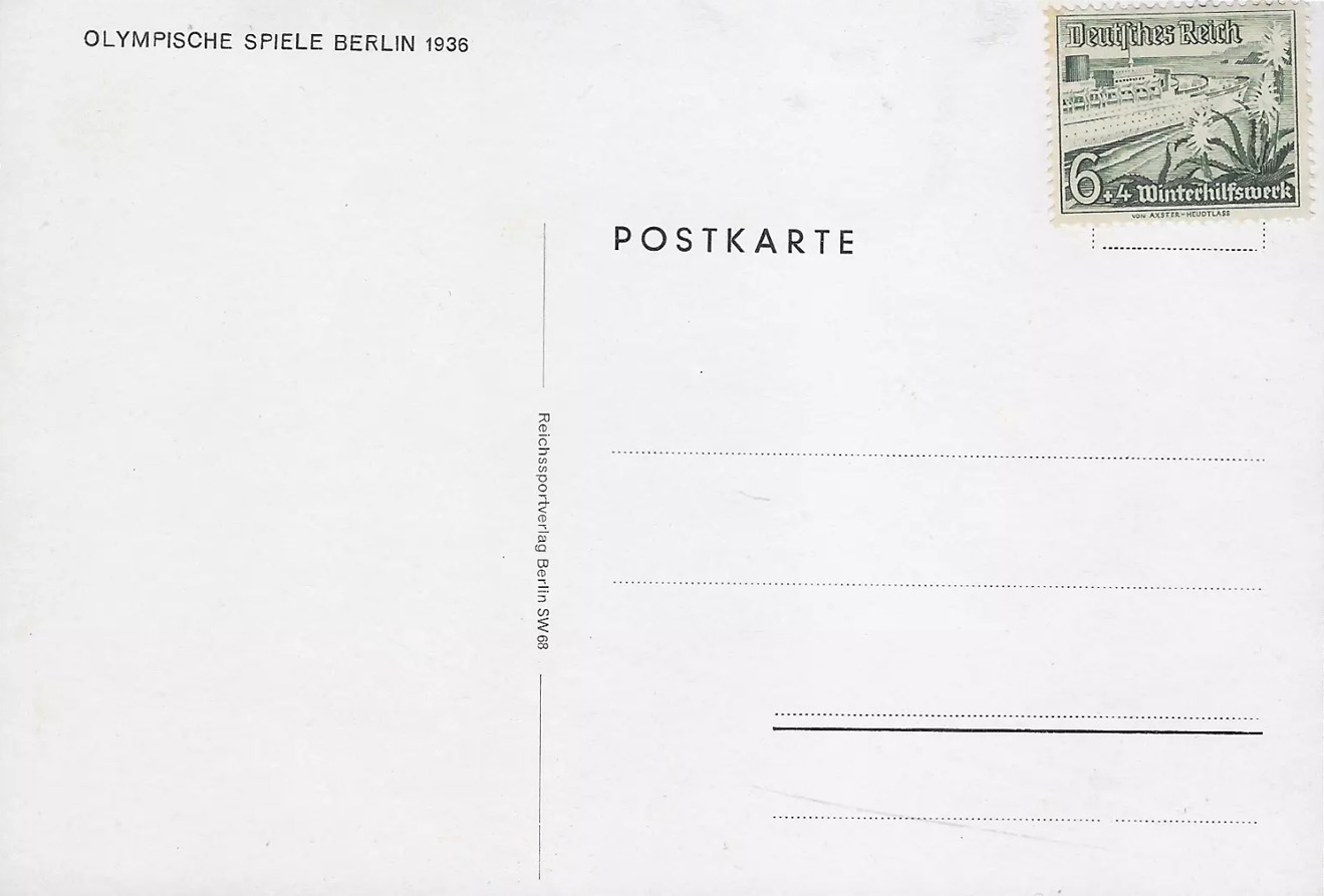 [Above: Another Olympic postcard. It says 'Zur Ehre des Vaterlandes - Zum Ruhme des Sports' (To the glory of the fatherland - To the glory of sport).]