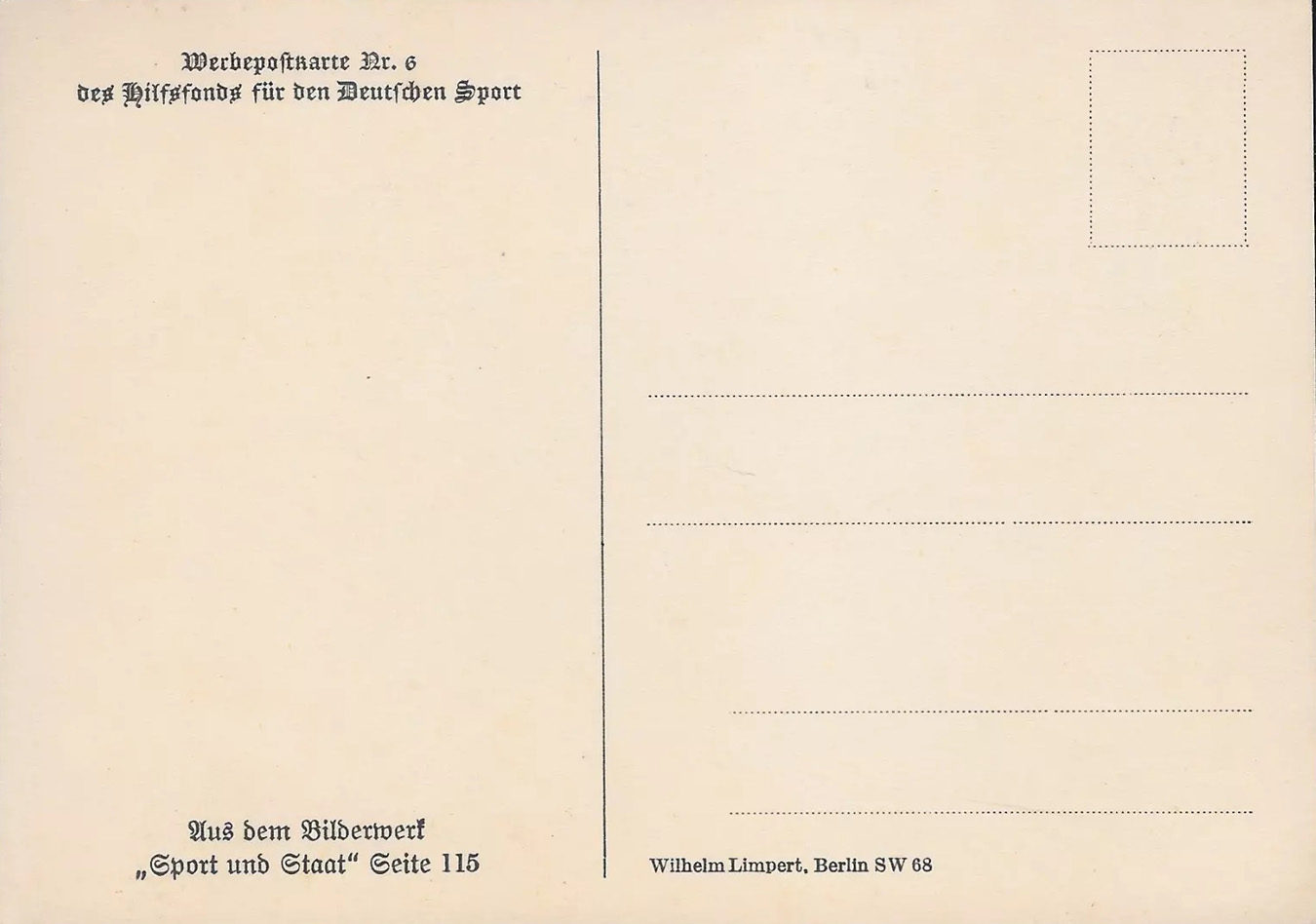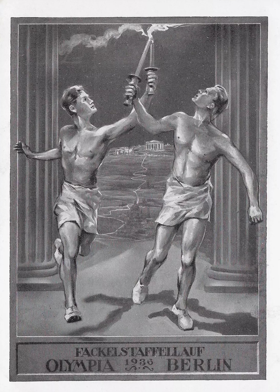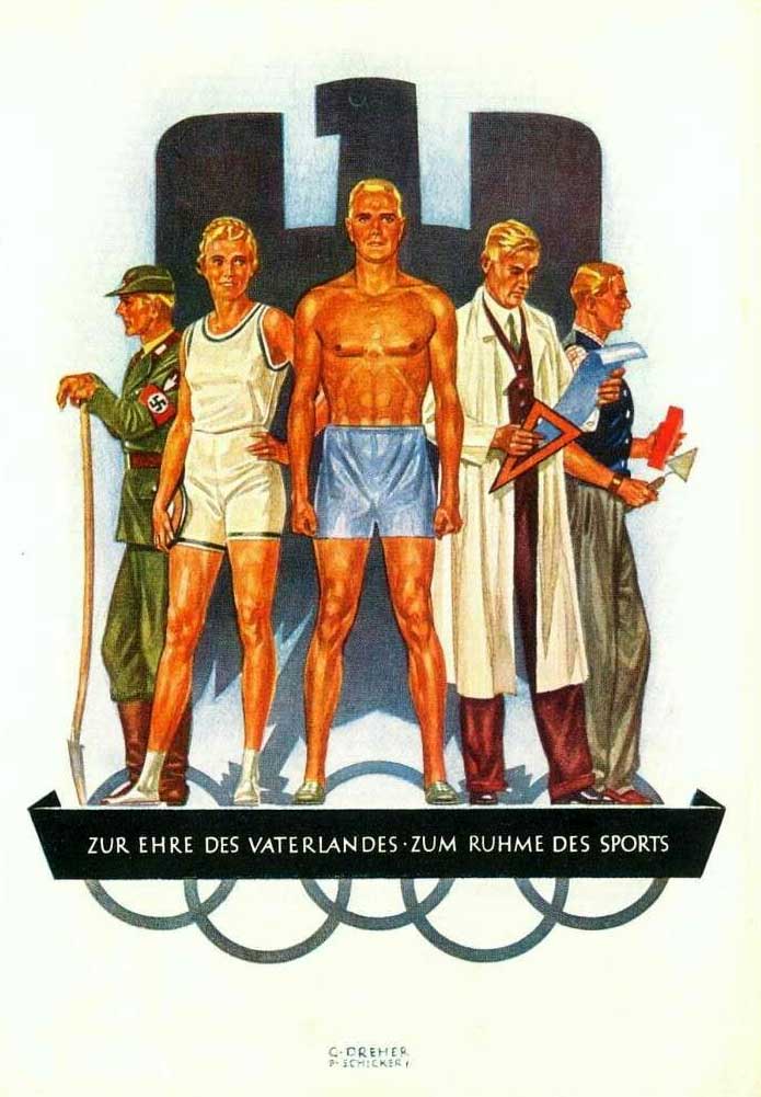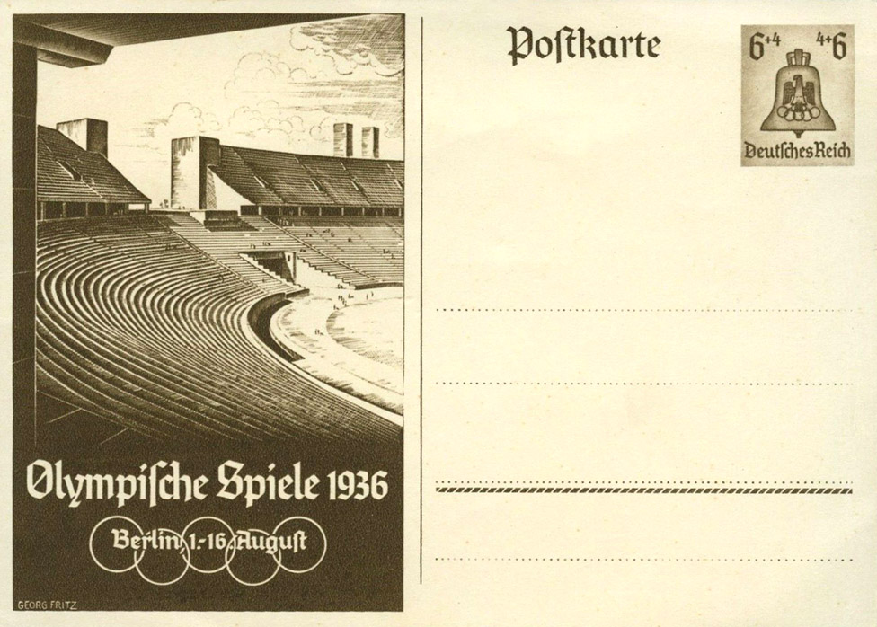 [Above: Another Olympic postcard. It says 'Zur Ehre des Vaterlandes - Zum Ruhme des Sports' (To the glory of the fatherland - To the glory of sport).]