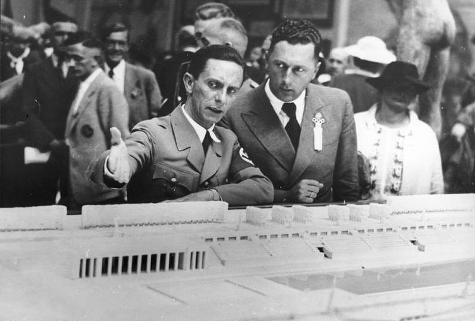 [Above: Joseph Goebbels and Hans Schweitzer at the opening of the Olympic art exhibition in 1936.]