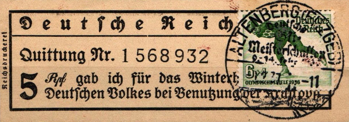 [Above: National Socialist League of the Reich for Physical Exercise (NSRL) membership stamps October/March 1938/1939]