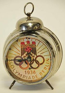 [Above: Now that's an alarm clock! This is one of many cool souvenirs sold during the 1936 Olympics.]