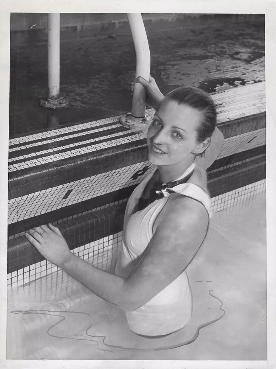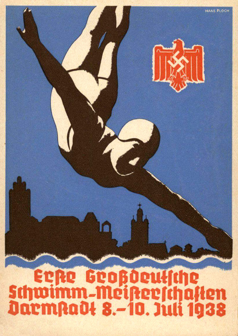 [Above: 'Erste Grossdeutsche Schwimm-Meisterschaften - Darmstadt 8.-10. Juli 1938' = 'First Greater German Swim Championships - Darmstadt 8.-10. July 1938']