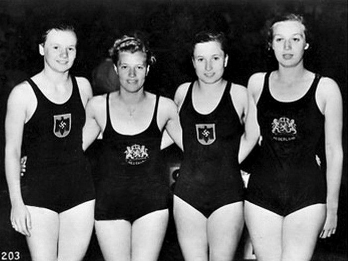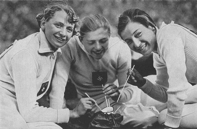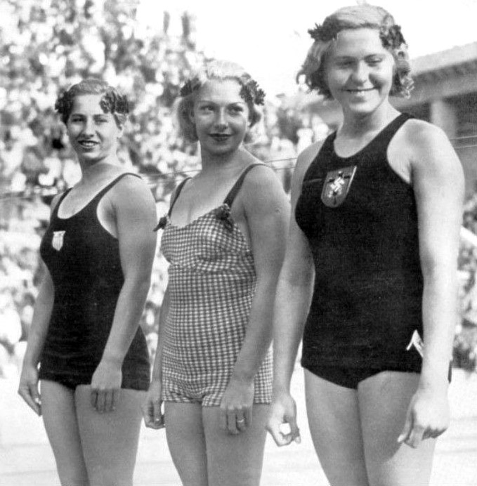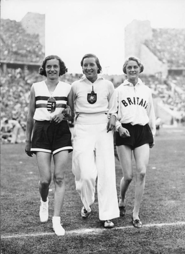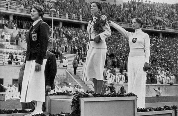 [Above: From left to right: Hungary's Ibolya Csak (Gold), Germany's Elfriede Kaun (Bronze) and Britain's Dorothy Odam (Silver).]