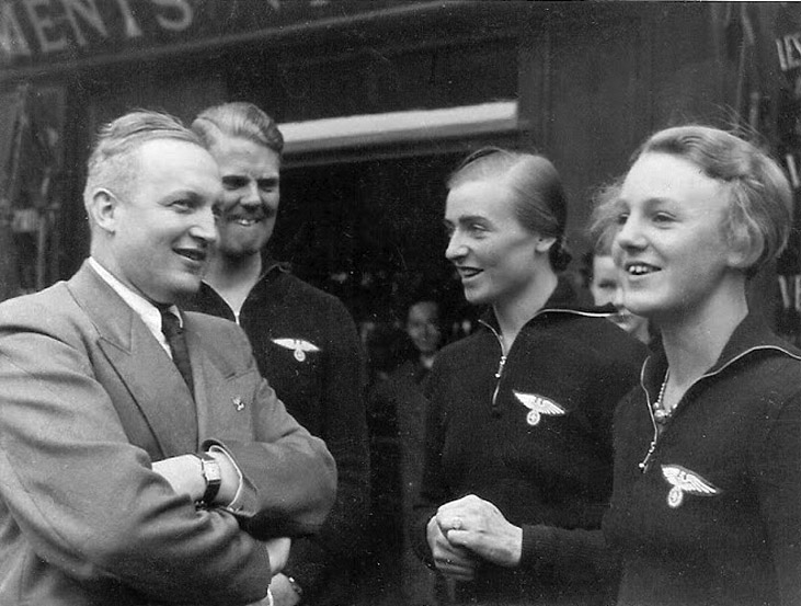 [Above: Another shot of Adolf Hitler during the Olympics - Tilly Fleischer is on his right.]
