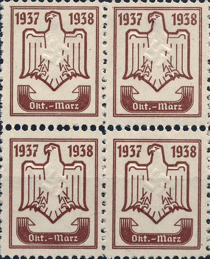 [Above: National Socialist League of the Reich for Physical Exercise (NSRL) membership stamps, October/March 1937/1938.]