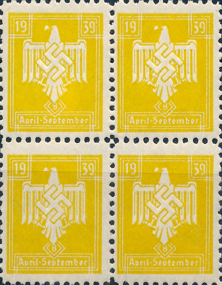 [Above: National Socialist League of the Reich for Physical Exercise (NSRL) membership stamps, April/September 1939]