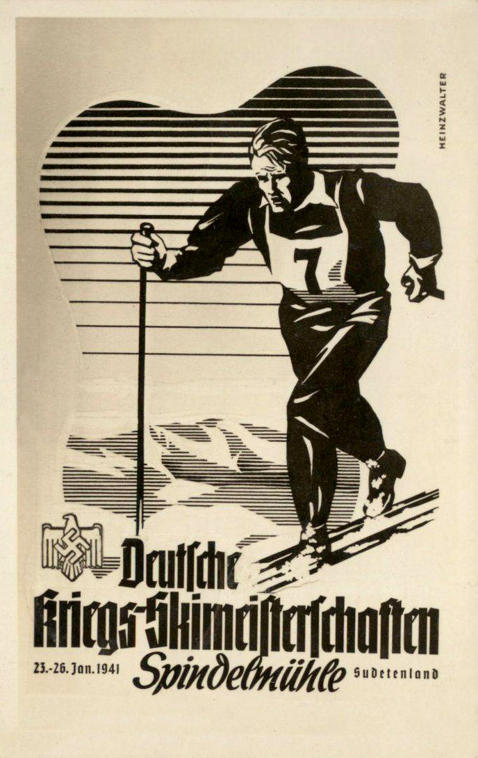 [Above: German War-Skiing Championships in Spindelmeuhle. This postcard is advertising ski championships in the Sudetenland.]