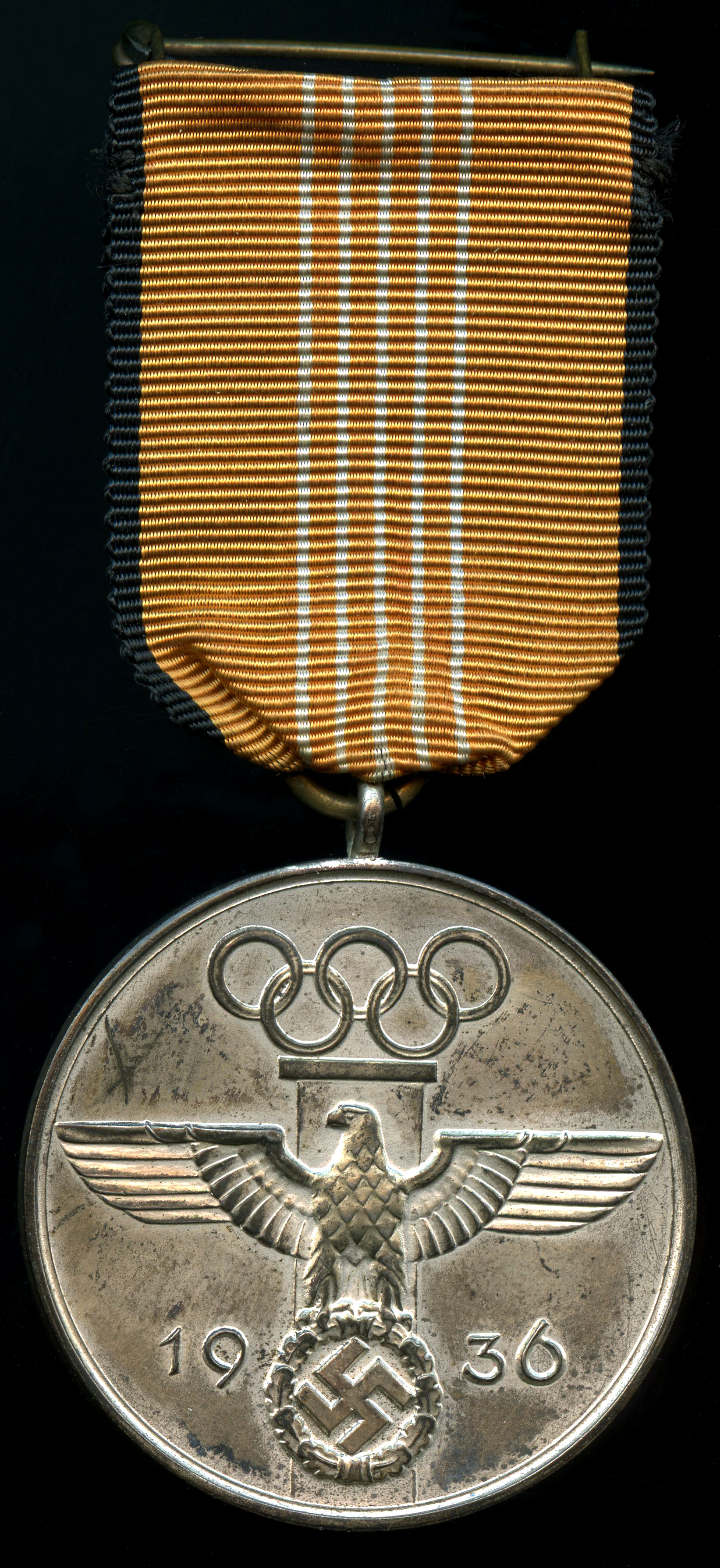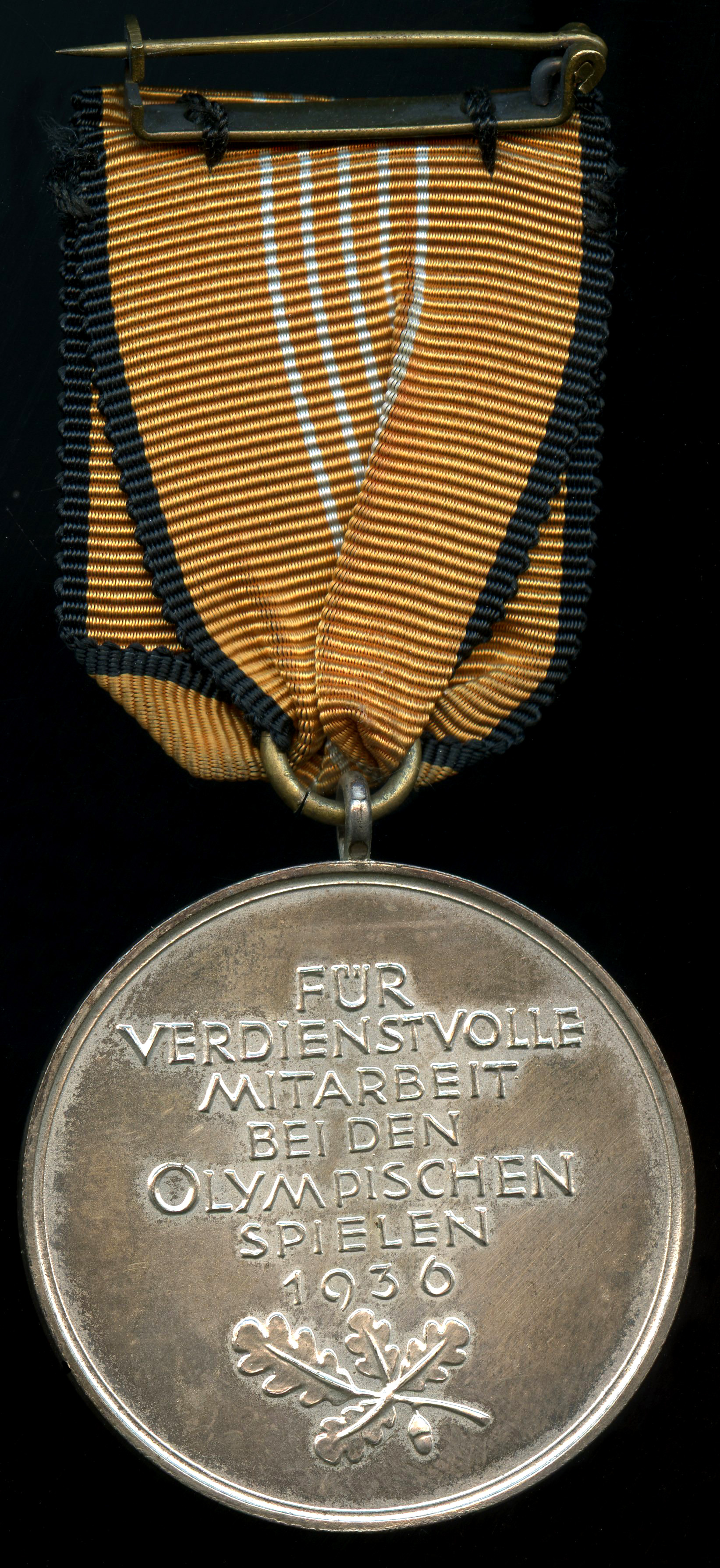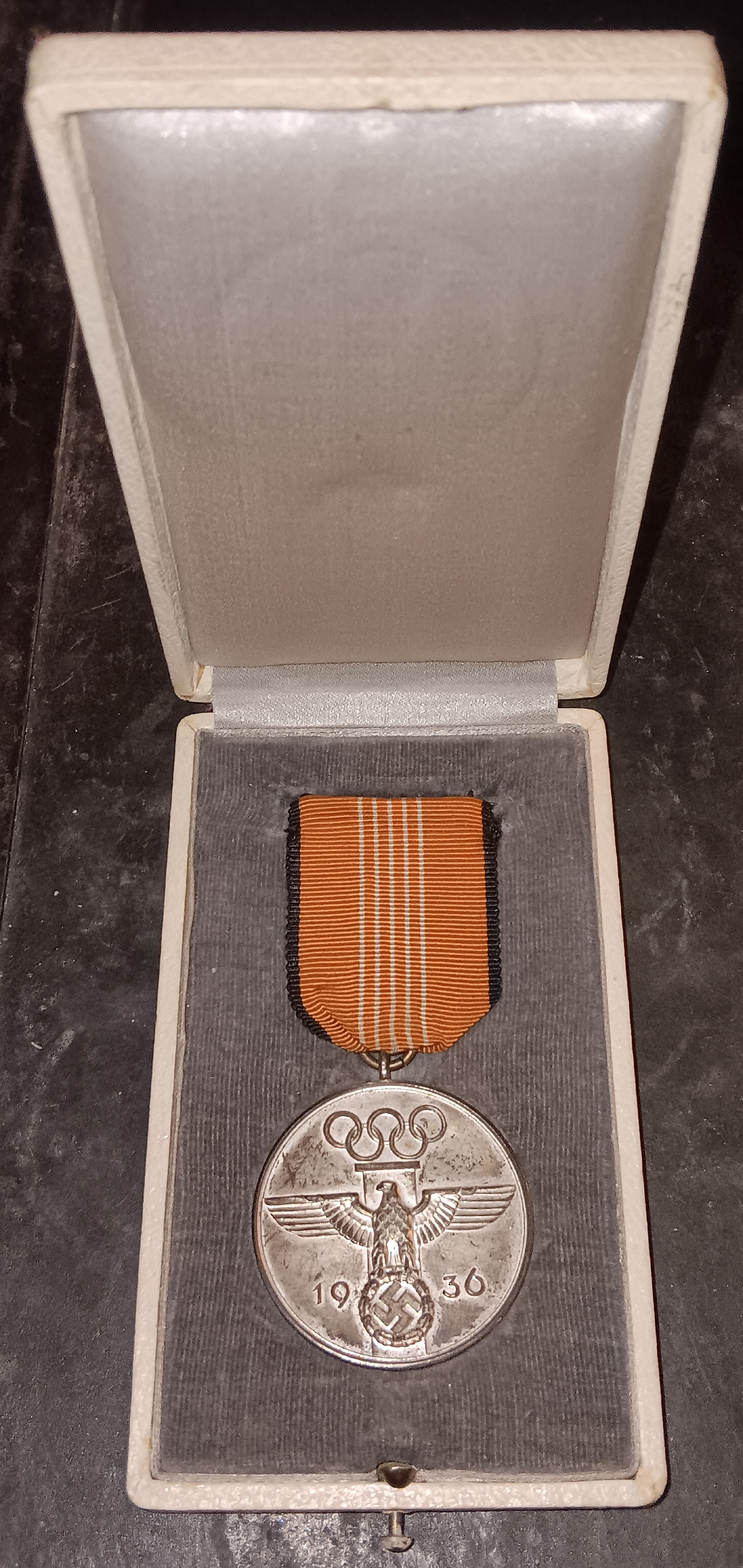 [Above: Box opened. This 3rd class German Olympic medal was awarded to civilians and foreigners who assisted with the planning of the Olympic games. Click to enlarge.]