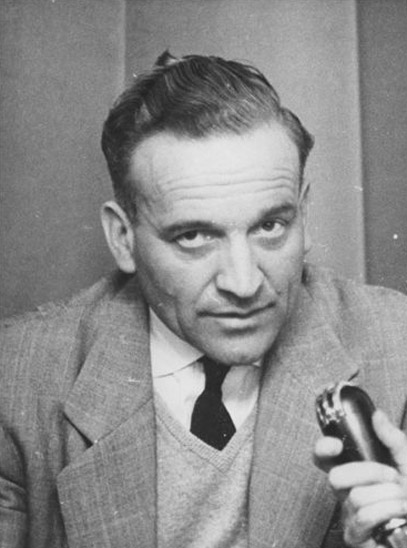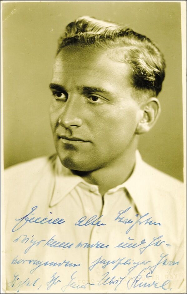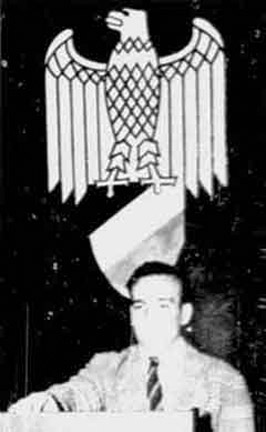 [Below: Rudel gives a speech in occupied postwar Germany]