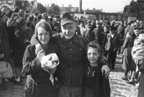 [Above: One of the lucky ones. This German POW has just returned from communist occupied Yugoslavia, June 1946.]