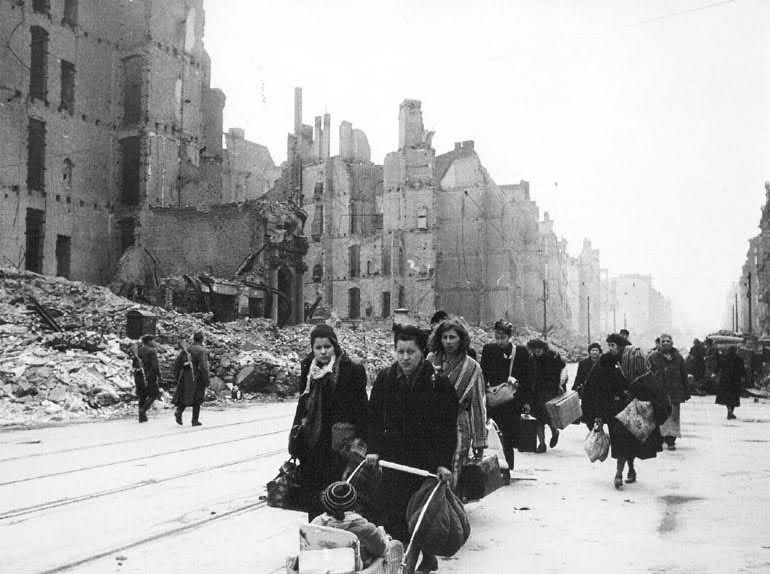 [Above: German refugees, most of them widows who would never know the fate of their husbands, fathers, sons, brothers, who were being systematically butchered all around the world in Allied concentration camps.]
