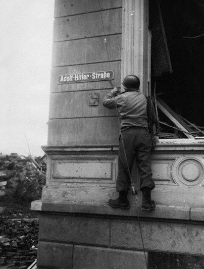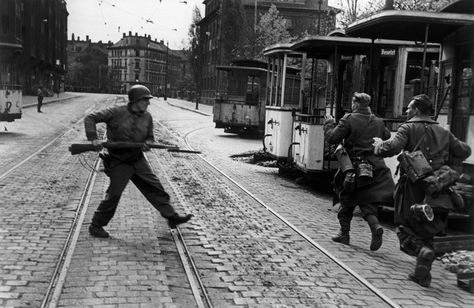 [Above: A vision of hell on the burned out streets of Berlin. The Allies demand of unconditional surrender forced the Germans to fight for every inch of soil. This tyrannical demand cost an untold millions of deaths, both Allied and Axis soldiers and civilians.]