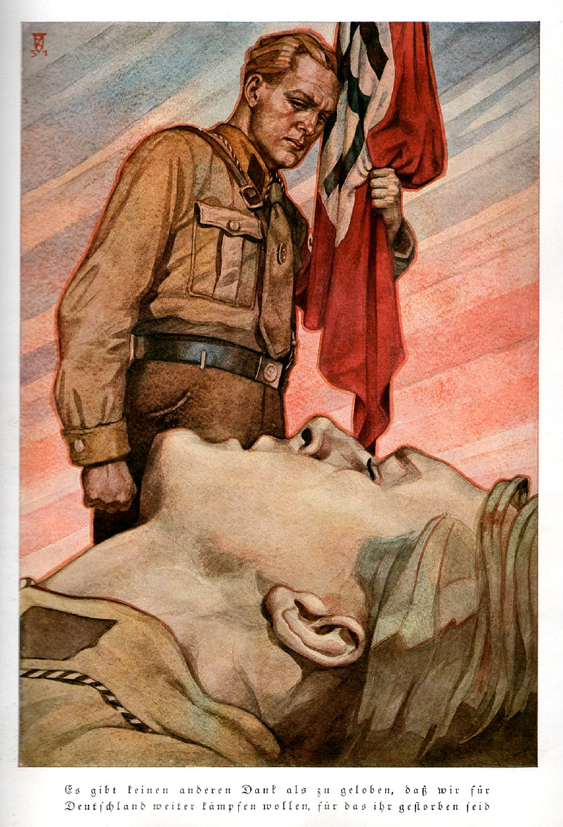 [Above: 'Es gibt keinen anderen Dank als zu geloben, dass wir für Deutschland weiter Kämpfen wollen, für das ihr gestorben seid' = 'There is no other thanks than to pledge that we want to continue fighting for Germany for which you died'.]