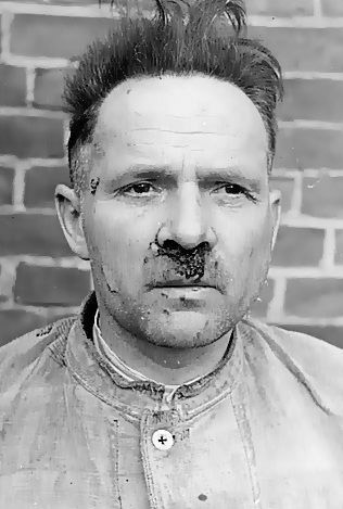 [Above: Höss with dried blood caked to his face.]