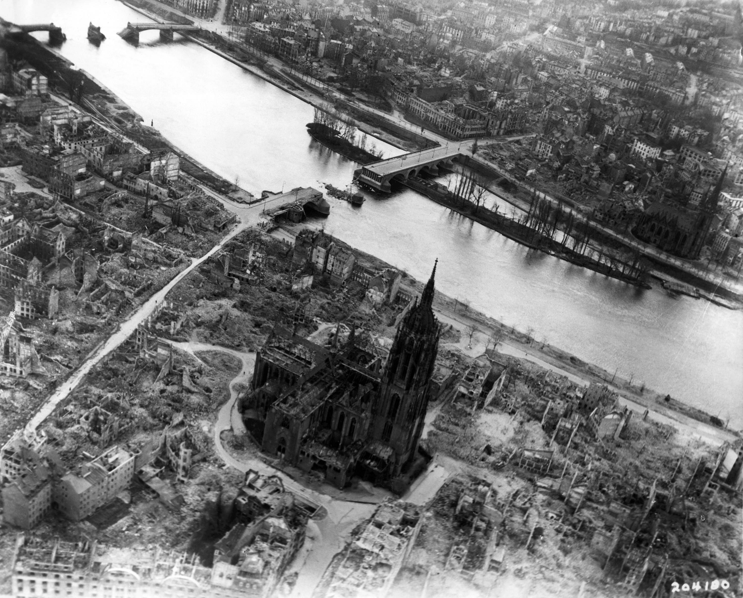 [Above: Frankfurt in utter ruins. Wherever there was beauty the Allies bombed to ugly ruin. Their signature was not of freedom, but death and destruction. Click to enlarge.]