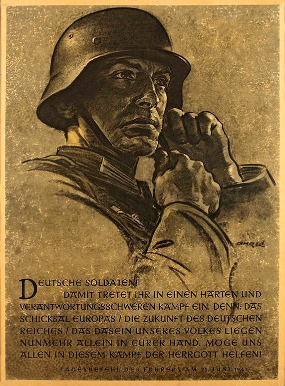 With this you enter into a hard and responsible fight. Because: the fate of Europe / the future of the German Reich / the existence of our people are now in your own hands. May the Lord help us all in this fight!']