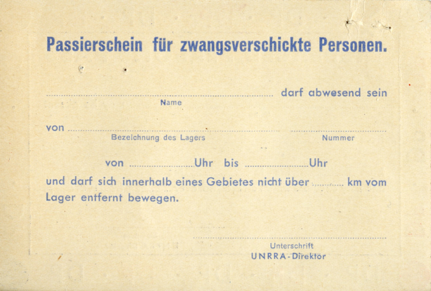 [Above: Displaced persons pass. Reverse.]