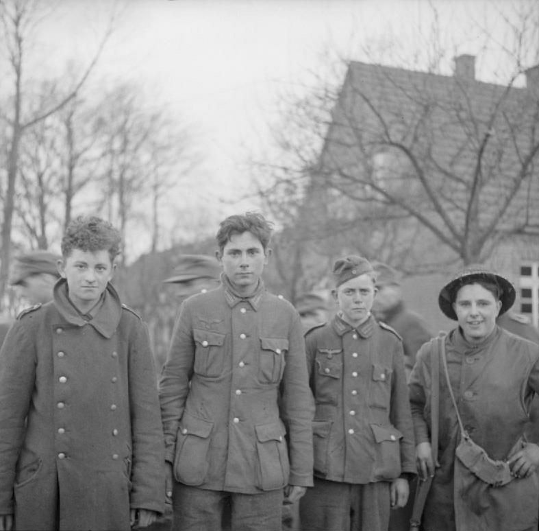 [Above: Young Luftwaffe POWs captured in the Dingden area of Hamminkeln, Germany.]