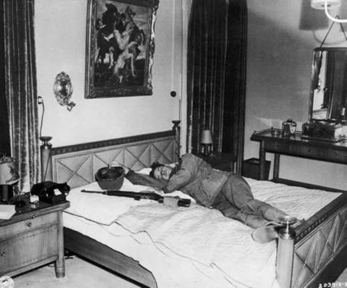 [Above: An American soldier defiles the bed of Hermann Göring. Wherever they went Allied soldiers took a deep glee in defiling anything and everything German, including sexually defiling women and children. It's a fact that American 'soldiers', if you could even call them that, took part in an untold many rapes and murders of German women and children, yet we are only taught that the Russians were guilty of it. One of the great lies of WWII.]