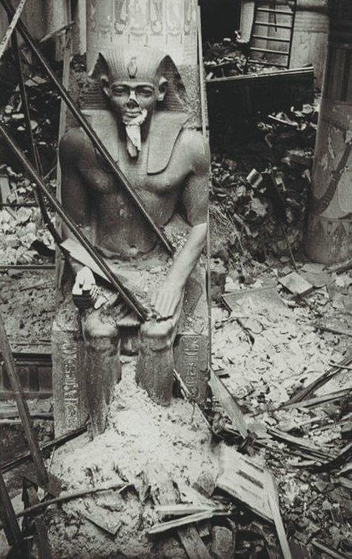 [Above: On November 17, 1943 an Allied bomb hit the Berlin Museum... this was no accident, the 'good guys' actually targeted museums and other cultural locales. Here is a nearly destroyed statue of Amenhothat II of ancient Egypt. This is a crime against humanity. One of countless committed by the Allies.]