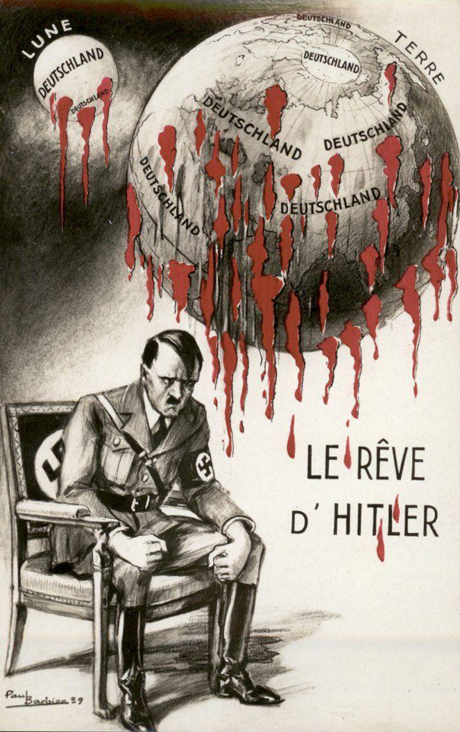 [Above: 'Hitler's Dream'. How pathetic and laughable. This is an example of Allied lies, in reality the Allied countries had conquered and colonized most of the world. I like that they even put Germany on the moon. Who was it that said 'There isn't an American or Russian space program, it's a German space program'. Because all of the American and Russian space programs were filled with German scientists that were kidnapped after the war, such as Werner von Braun, a card carrying member of the National Socialist party. He became the head of NASA for god sakes.]