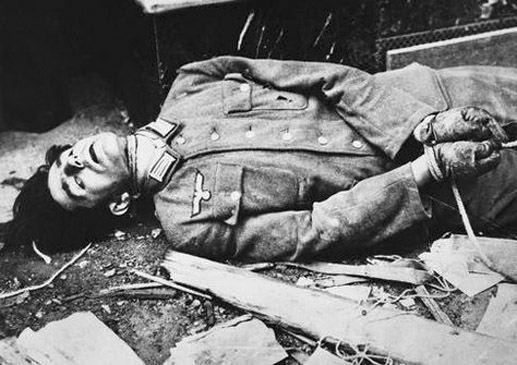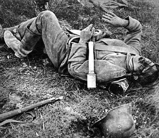 [Above: Allied soldiers loved to play with corpses, here they put a stick grenade next to a martyred soldier.]