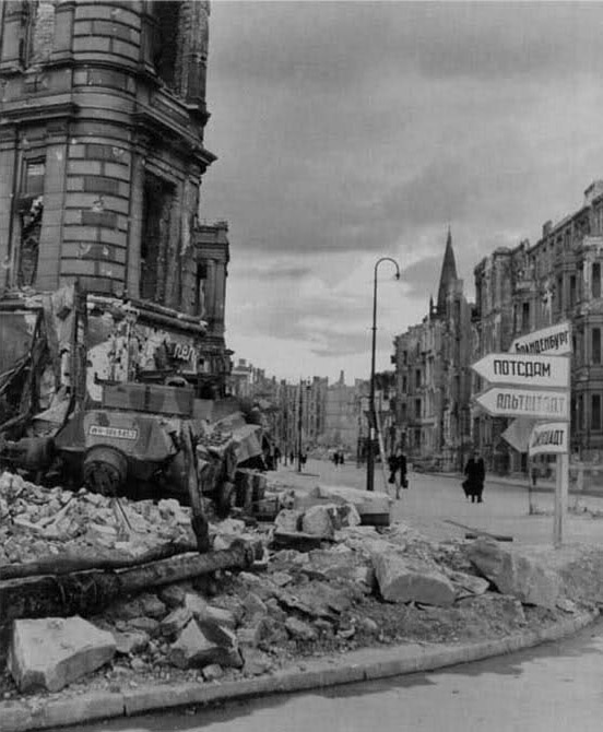 [Above: The communist Russian occupiers had the nerve to put up street signs in Russian using Cyrillic! Many, many street names were changed all over Germany, the majority of the new names used the names of Jewish figures and other silliness.]