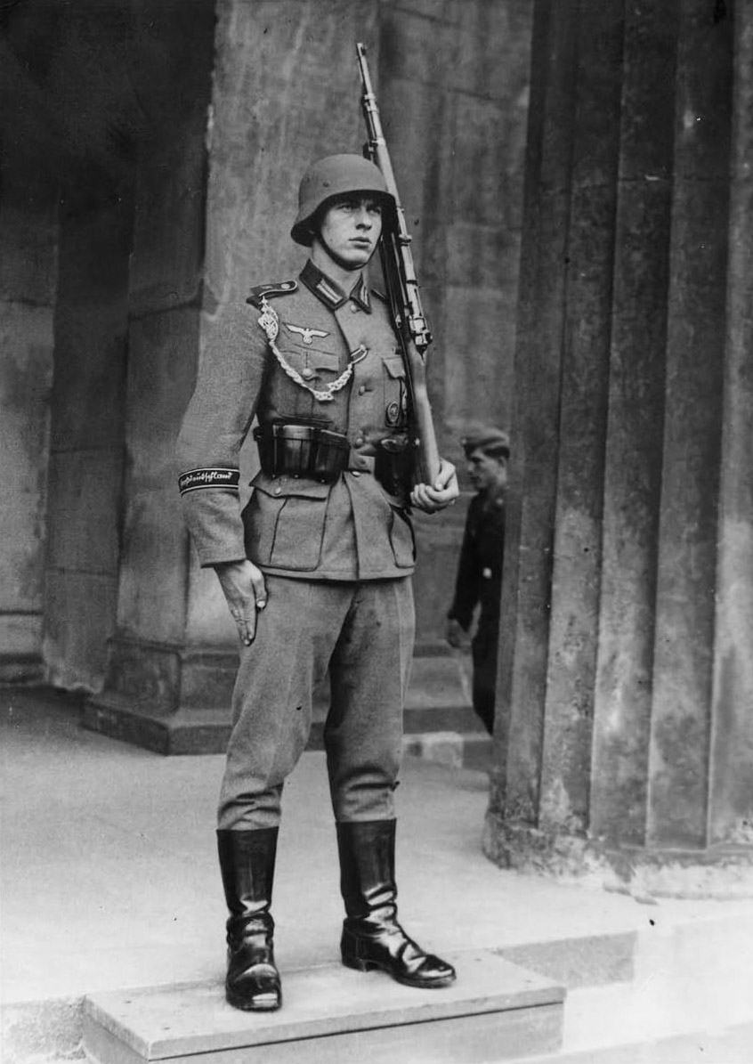 [Above: The eternal sentinel. The guardian of European culture. The German soldier embodies an ideal which we strive for. This knight is from the elite Großdeutschland Division.]