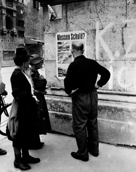 [Above: 'Wessen Schuld?' = 'Whose Fault?' A post war propaganda poster from the Allies meant to instill guilt in the German population. It worked.]