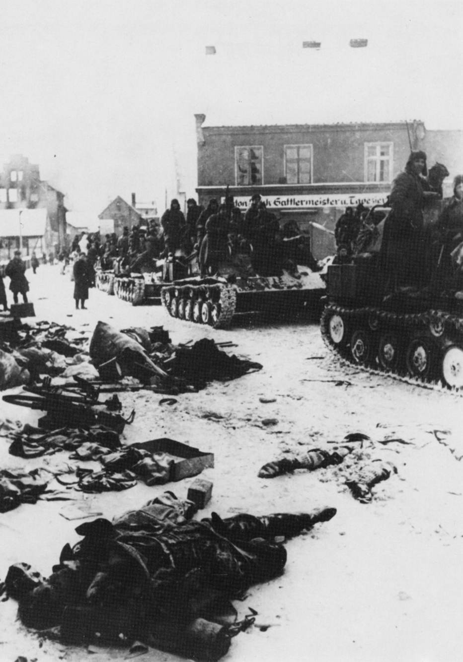 [Above: Eastern Prussia. Cold and hunger... satiated by death.]