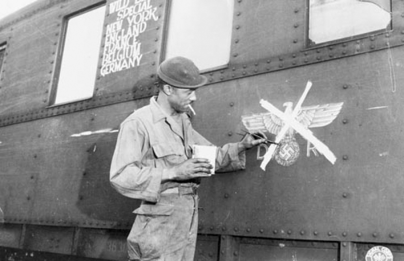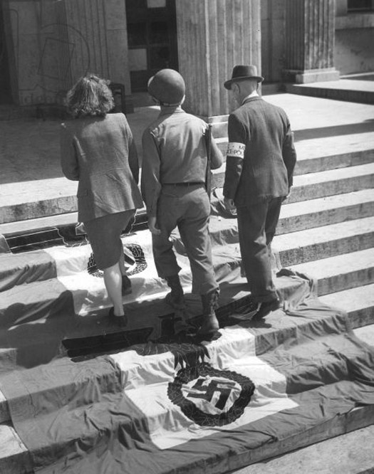 [Above: American soldiers, well all Allied soldiers, were rampant thieves. They were so obsessed with "those evil Nazis" that they would even collect rocks that they stepped on. Can you imagine German soldiers collecting rocks that Churchill might have stepped on? Hahaha. No.]