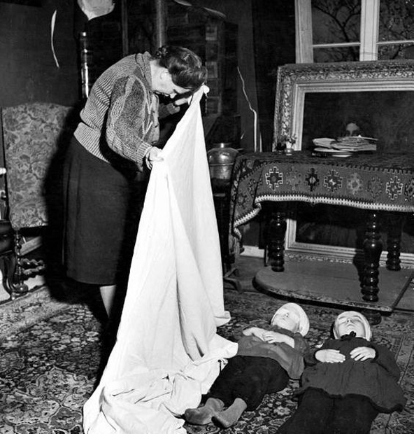 are normally seen only by surgeons carrying out operations. Most of the victims were deranged to some extent. As night fell the silence that fell