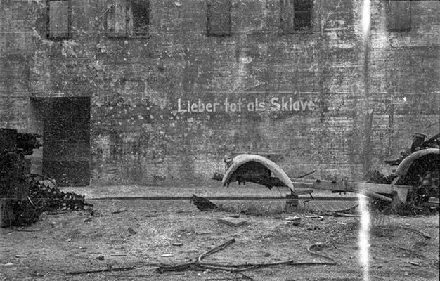 [Above: Berlin, zoo bunker. 'Lieber tot als skalve' = 'Better dead than a slave']
