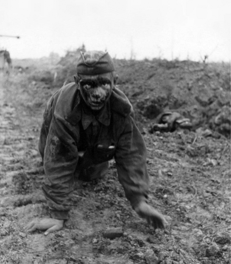 [Above: A extremely young Soviet soldier, injured and scared, surrenders during the Battle of Kursk. July, 1943. The invasion of Russia was to fight communism. It was not a war against the Russian people.]
