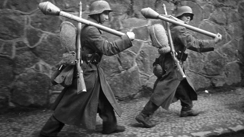 [Above: This is what superheroes look like. Grenades in their boots, heavy machine guns in their hands and Adolf Hitler in their hearts!]