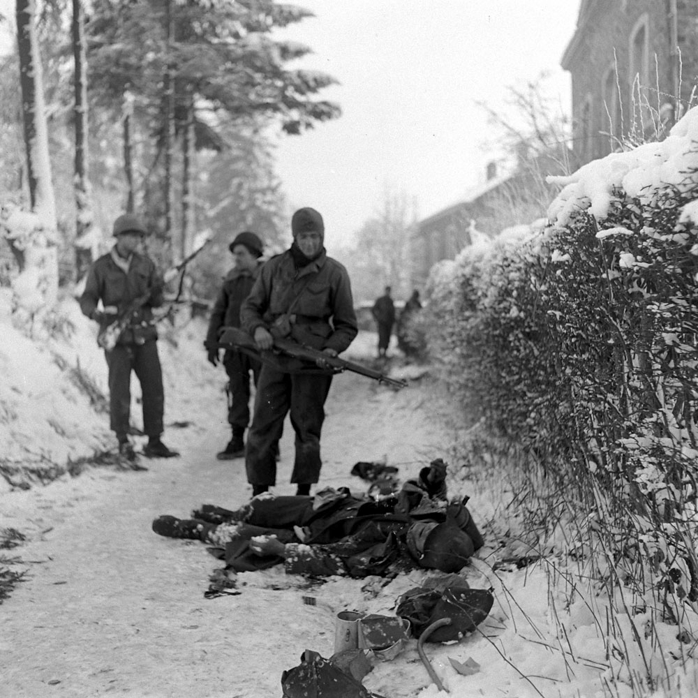 'As the Americans marched in, the old and the new schools had been totally destroyed, the parsonage burned, and homes and farms razed to the ground. Those already lying underground were brought back to the surface when the cemetery was hit. Nothing escaped the fighter-bombers' war on the villages...'