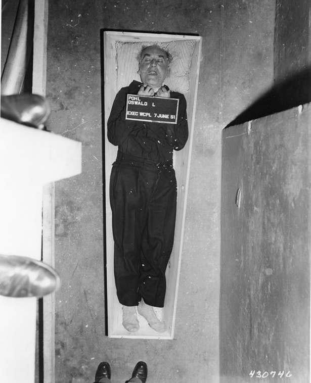 [Above: SS official Oswald Pohl. Pohl was hanged shortly after midnight on June 7, 1951 at Landsberg Prison. Pohl was an extremely capable SS officer and dedicated National Socialist. In 1932 he proclaimed, 'I was a National Socialist before National Socialism came into being.' The prison chaplain described Pohl as 'a man full of energy, willpower and vigor... a man of a highly cultured mind and heart...'