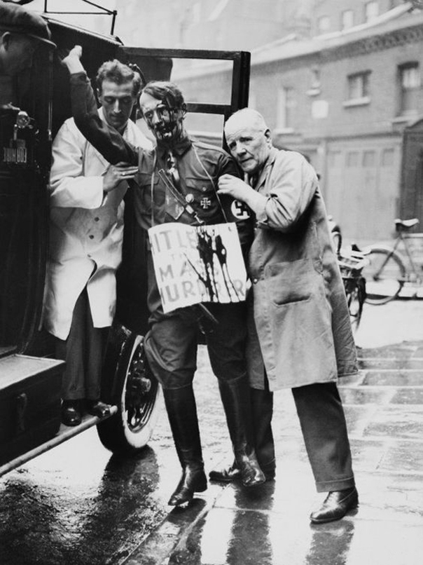 [Above: Ahh, how cute. They even put some ketchup on it. This is wax model of Adolf Hitler, May 13, 1933. Such childish idiots.]