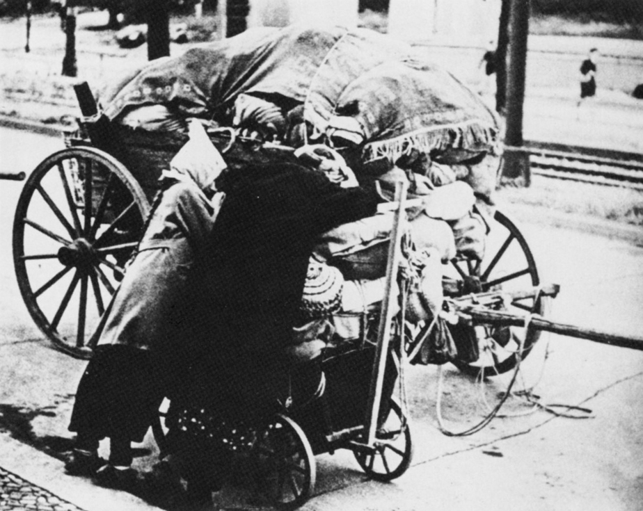 [Above: Millions of German civilians forced from their ancestral homes. It was the largest migration in human history.]
