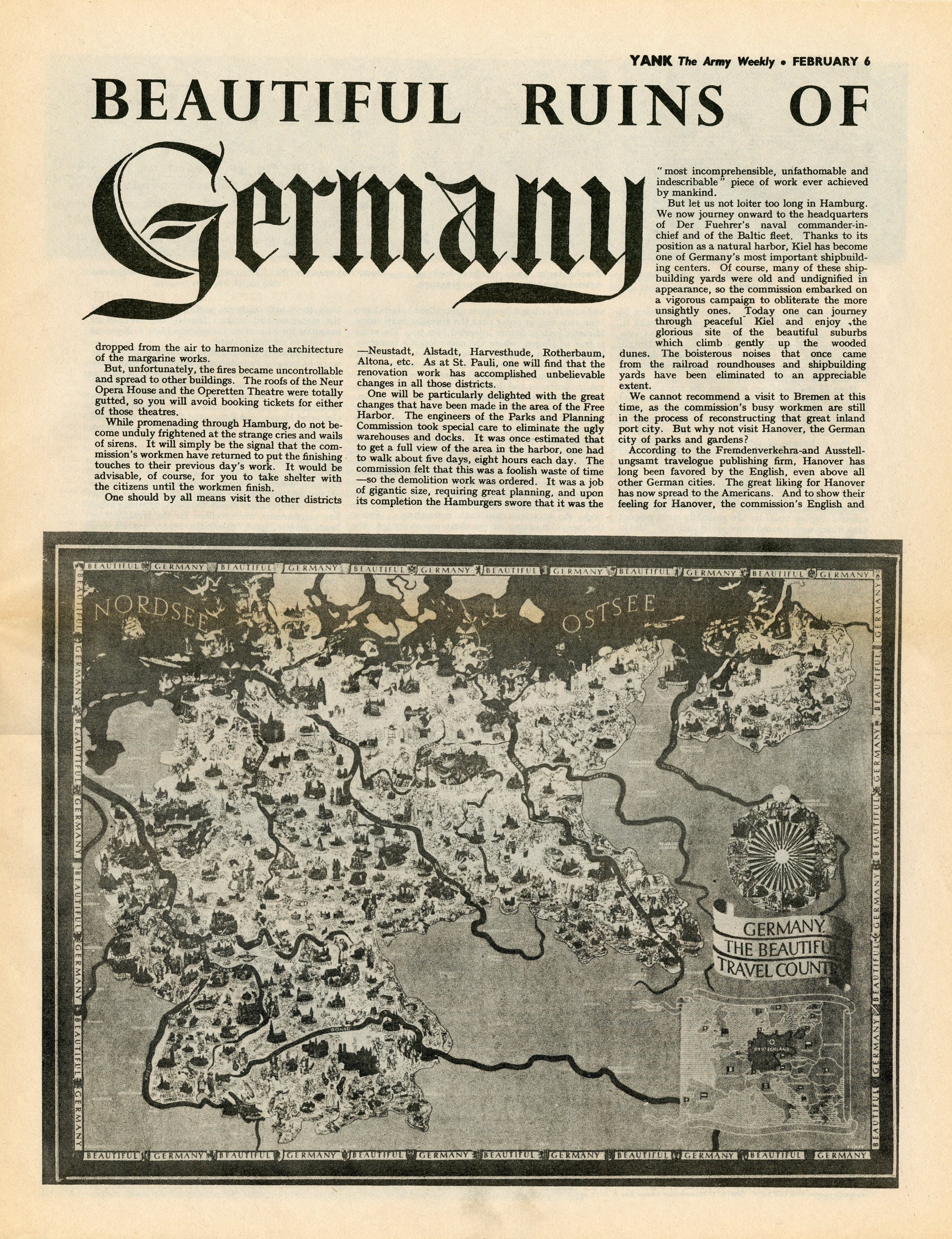 [Above: This has to be the most disgusting article I've ever read in my entire life. This is from Yank newspaper, from February 6, 1944, vol. 2 no. 34. Written by a 'Saul Levitt', a Jew. This Jew pours his black hatred for Germans onto these pages like you've never witnessed before. Truly inhuman hatred. Sickening to any decent human being. Hell, even serial killers would be disgusted by this article.]