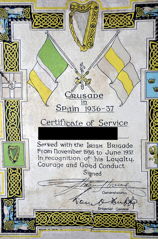 [Below: ‘Crusade in Spain’- certificate of O’Duffy’s Irish Brigade.]
