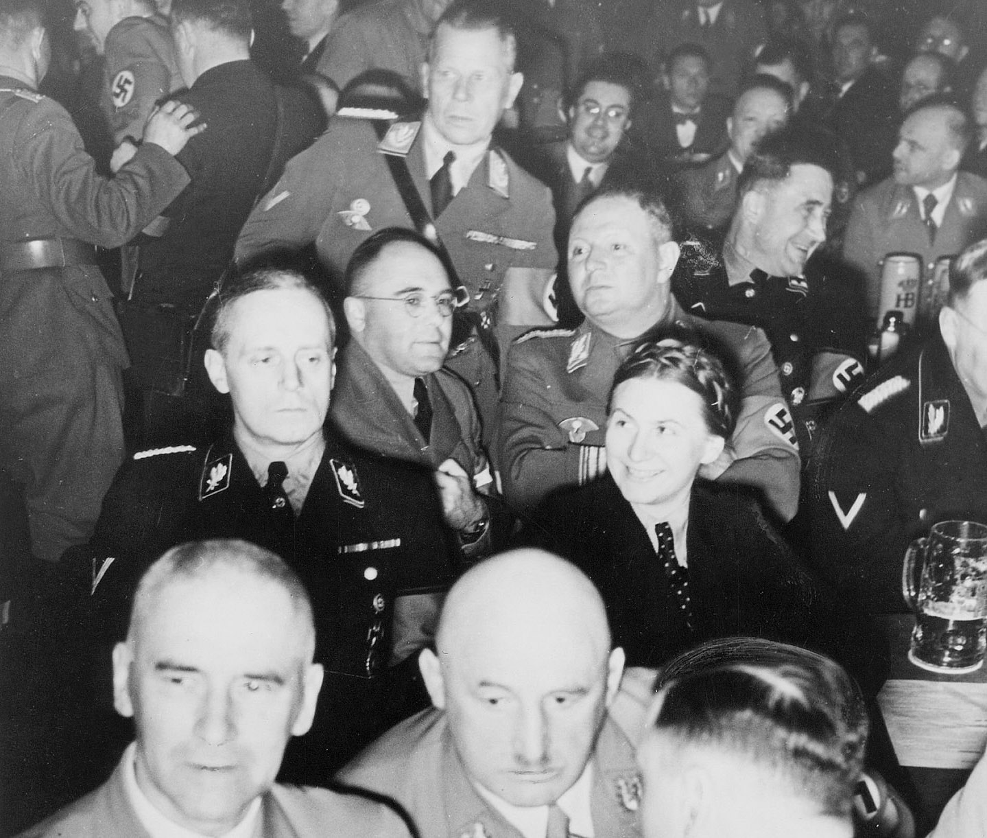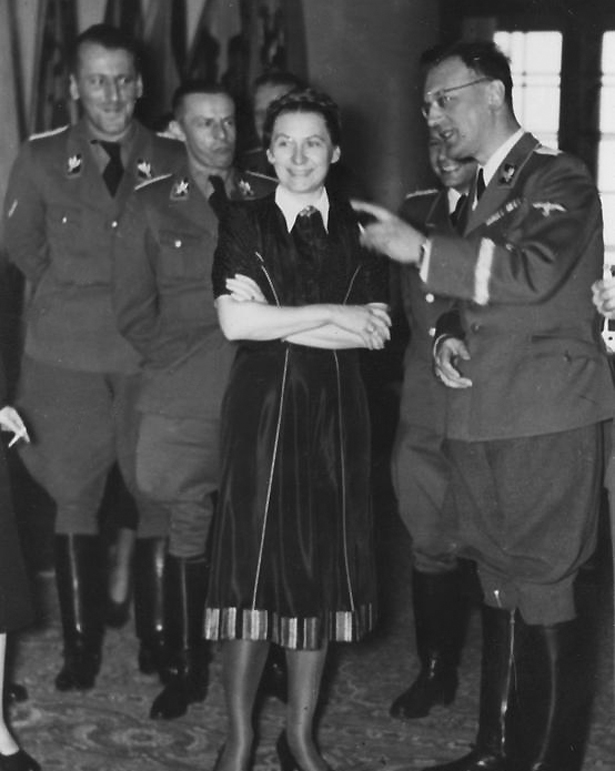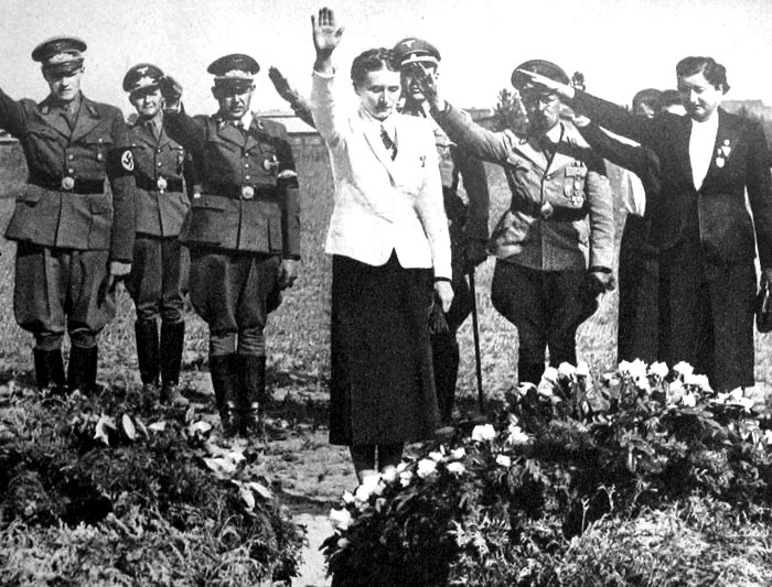 [Below: Gertrud Scholtz-Klink with SS officers at the 1938 Nuremberg Party rally.]
