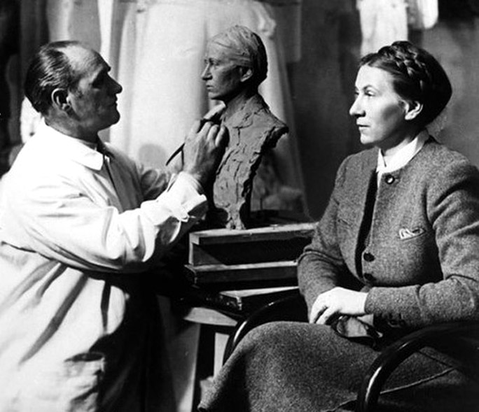 [Below: Gertrud Scholtz-Klink being immortalized in stone by Ernst Paul Hinckeldey.]