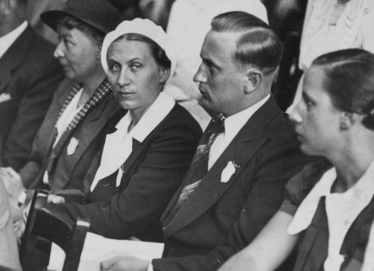 [Below: Gertrud Scholtz-Klink, with the great Rudolf Hess on the right.]