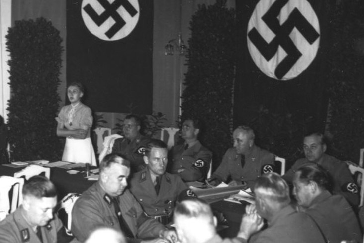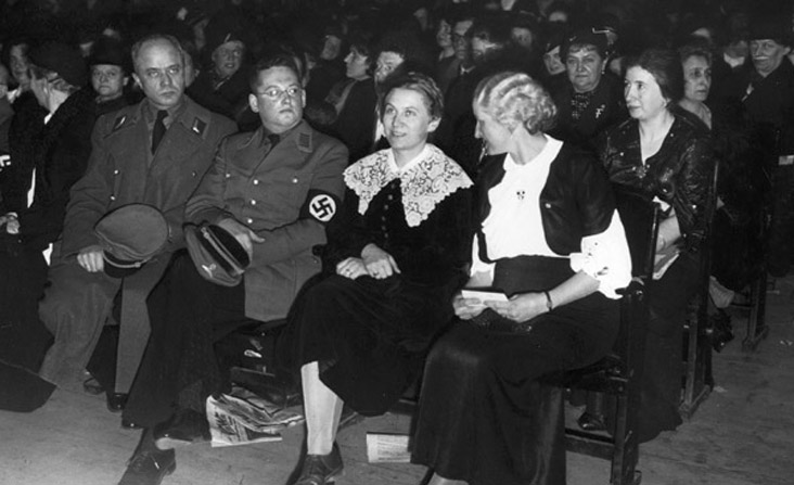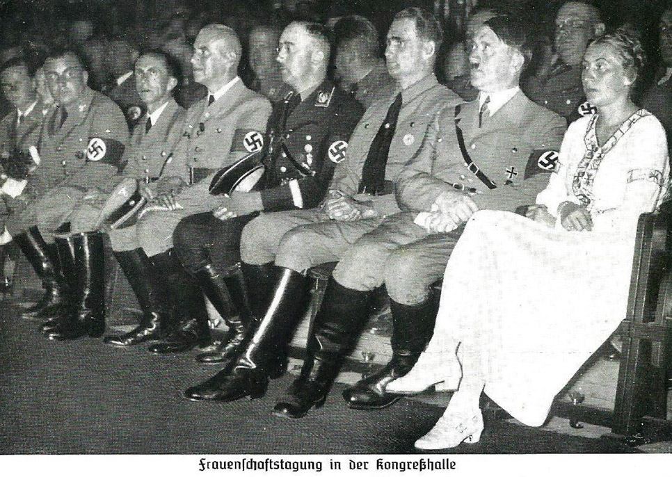 [Below: Gertrud Scholtz-Klink, next to her is Martin Bormann, Rudolf Hess, Robert Ley and Alfred Rosenberg.]