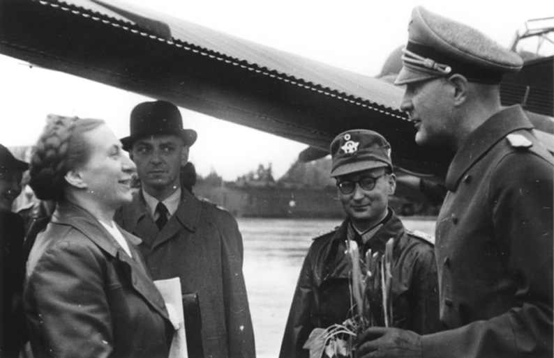 [Above: Gertrud Scholtz-Klink with Robert Ley and Hanna Reitsch.]