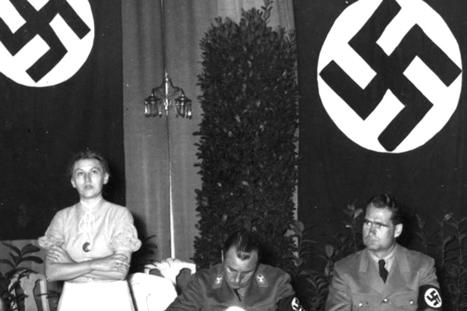[Below: Gertrud Scholtz-Klink (white dress). Courtesy of BPK.]